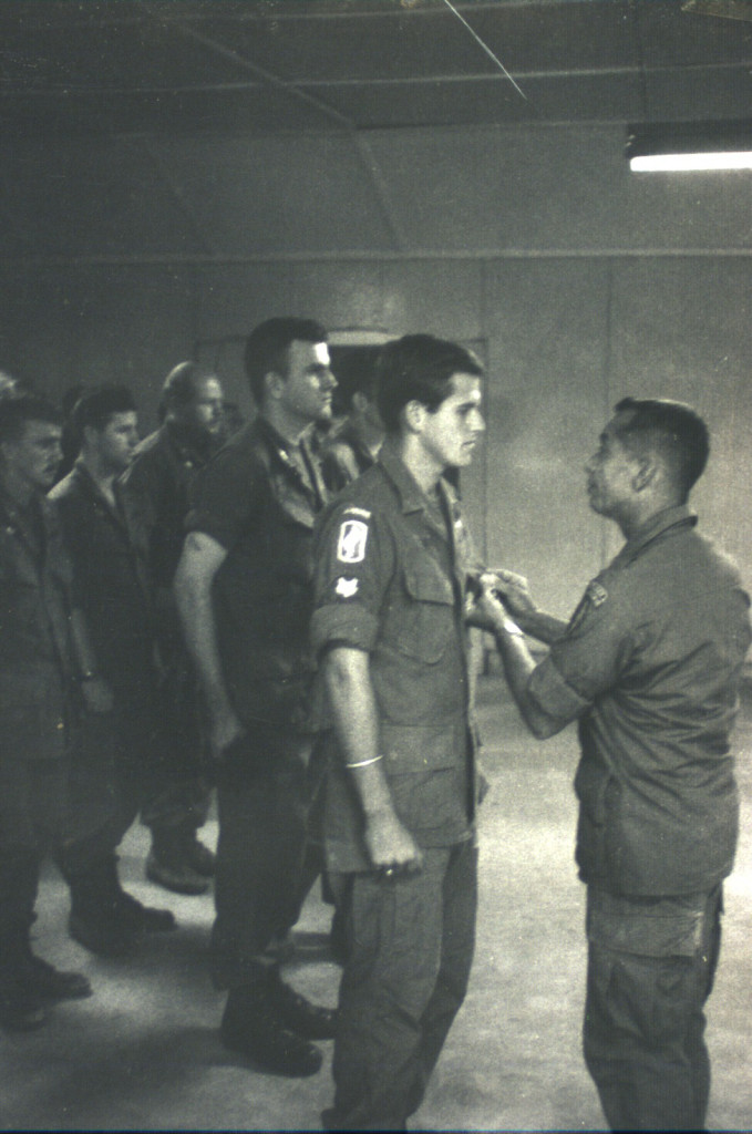 Here’s a photo of Col. Jack Warren, FOB 4 commander presenting a Silver Star to ST Alabama Assistant Team Leader Lynne M. Black Jr., for a combat action in Laos on Oct. 5, 1968, when the nine-man recon team tangled with an NVA division in the A Shau Valley.
