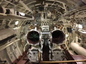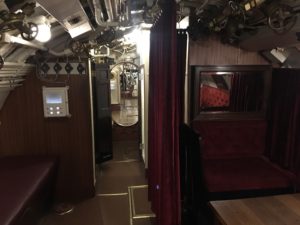 A photo book left on one of the tables in the officers’ quarters proves it, though. The black and white photographs show past crews manning their various posts, peeking through the periscope and entertaining high-powered guests in the modest, but still fancy, galley.