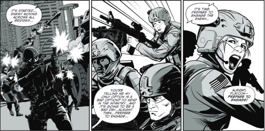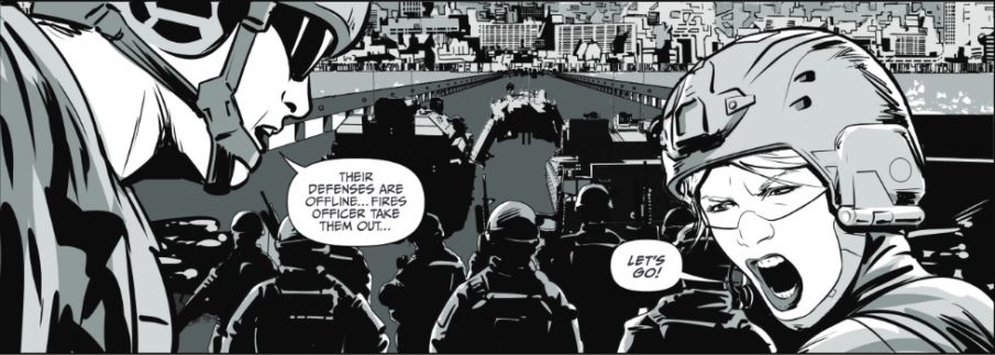 The comic doesn’t address how North Korea’s autonomous forces have become such a looming threat in the next nine years, nor does it explain how decades old artillery assets could be “turned” against North Korea through a cyber attack, but comic books are allotted some leeway when it comes to realism.