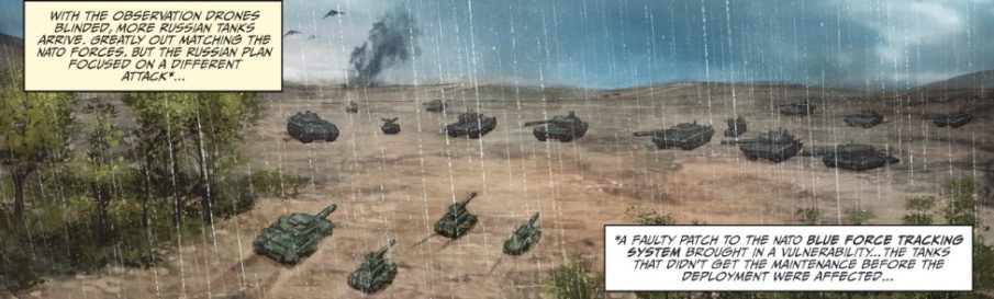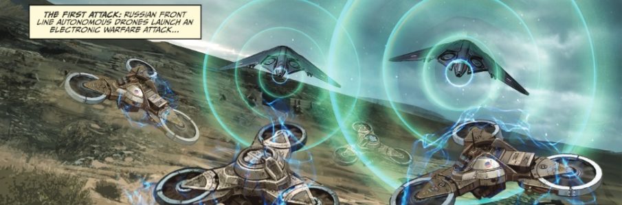 Cyber Command’s leadership, as a result, have been jockeying to absorb more authority over elements of the U.S. Defense infrastructure that tie into elements of their purview. One of these elements is on full display in the “Silent Ruin” comic, where it’s Russia’s ability to neutralize U.S. drones with a cyber attack that gives them the advantage. The underlying premise being, without Cyber Command’s oversight, American drones are vulnerable.