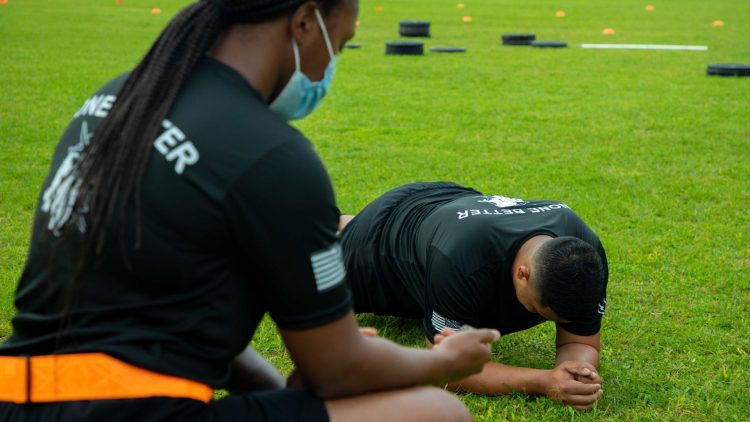 A soldier participating in a fitness exercise test. (US Army)