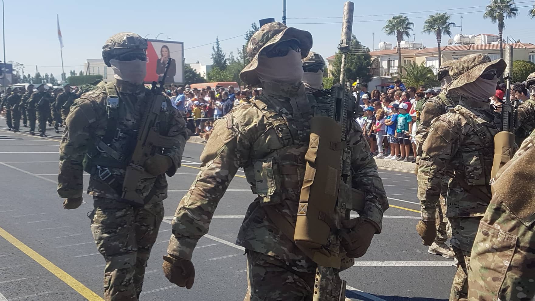A Cypriot operator assigned to the Special Operations Company of the Cypriot National Guard — not an equivalent of the U.S. National Guard — during a military parade. He is carrying an FN SCAR–H TPR (Tactical Precision Rifle). This rifle has been based on SOCOM’s MK-20 SSR.