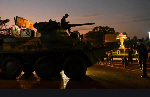 Armored vehicles armed with water cannons have advanced into the protest epicenter in Myanmar and all internet access is cut off.