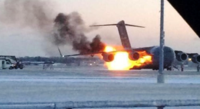 Last week in Ohio, a Boeing C-17A Globemaster III from the 445th Airlift Wing, based at Wright-Patterson AFB, was involved in Class A ground mishap during engine start. The mishap was a fire in the number three engine and appears to have caused damage to the number four engine, the right wing, and a portion of the fuselage. Thankfully, the fire was contained and the crew was able to egress safely.