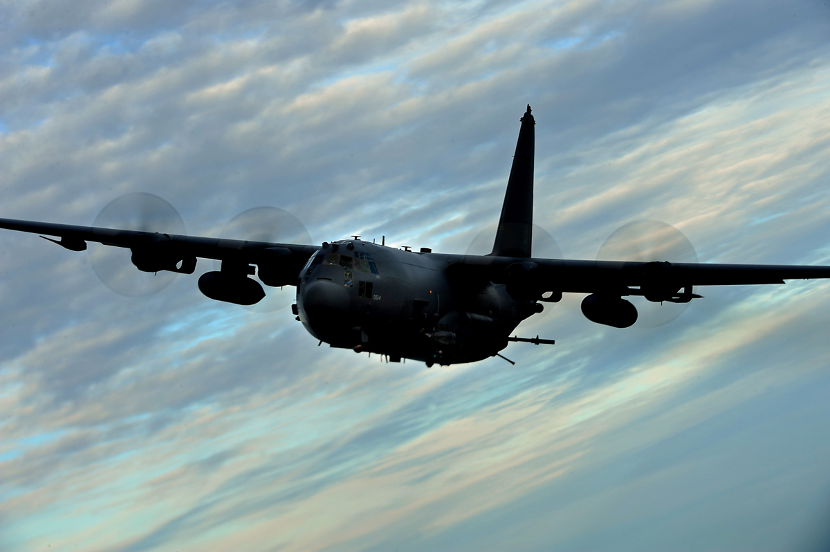 The C-130 makes the the ultimate gunship and has been raining down destruction since 1966. Originally nicknamed the “Super Spook,” the first AC-130A “Spectre” and was armed with impressive array of six guns. Two 20mm Vulcan Gatling guns, two 7.62mm Mini Gatling guns and two 40mm Bofors Auto-cannons. The H model would replace the mini guns and one of the Bofors cannons with a 105mm Howitzer.