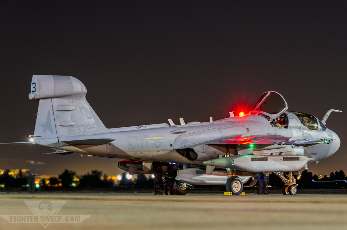 This particular airframe had just shy of 12,000 flight hours when her fuel tanks ran dry and the Pratt & Whitney J52 turbojet engines spooled down for the last time as she retired to the California wine country. Witnessing an aircraft literally being put to rest like this is a bittersweet moment even for bystanders, and especially so for the Prowler crew.
