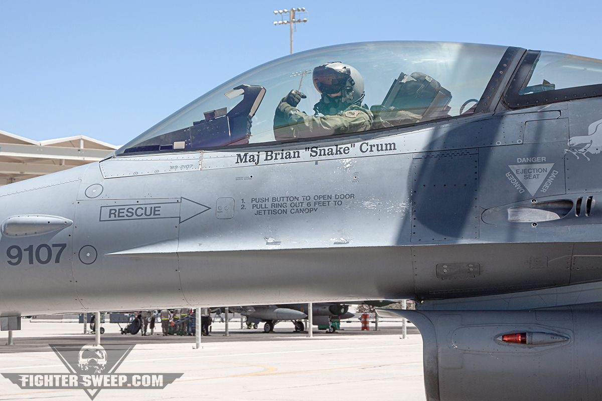 He’s a wiry guy who spoke to us very candidly about his life before the Air Force, as well as his joys, triumphs, and struggles while learning to fly the mighty Viper. He is also a bit of a visual artist, responsible for putting this fantastic video together, and he understands the full weight of being in the final graduating class of the 308th FS Emerald Knights. FighterSweep went along as the students stepped to their aircraft, taxied out to EOR, and rocketed into the night sky for the last parts of their B-course syllabus.