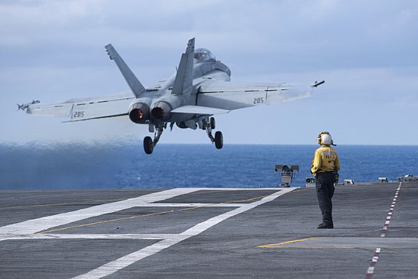 Picture of the Day: Aviation Boatswain’s Mate 3rd Class Katie Brown Watches F/A-18F Super Hornet Launch