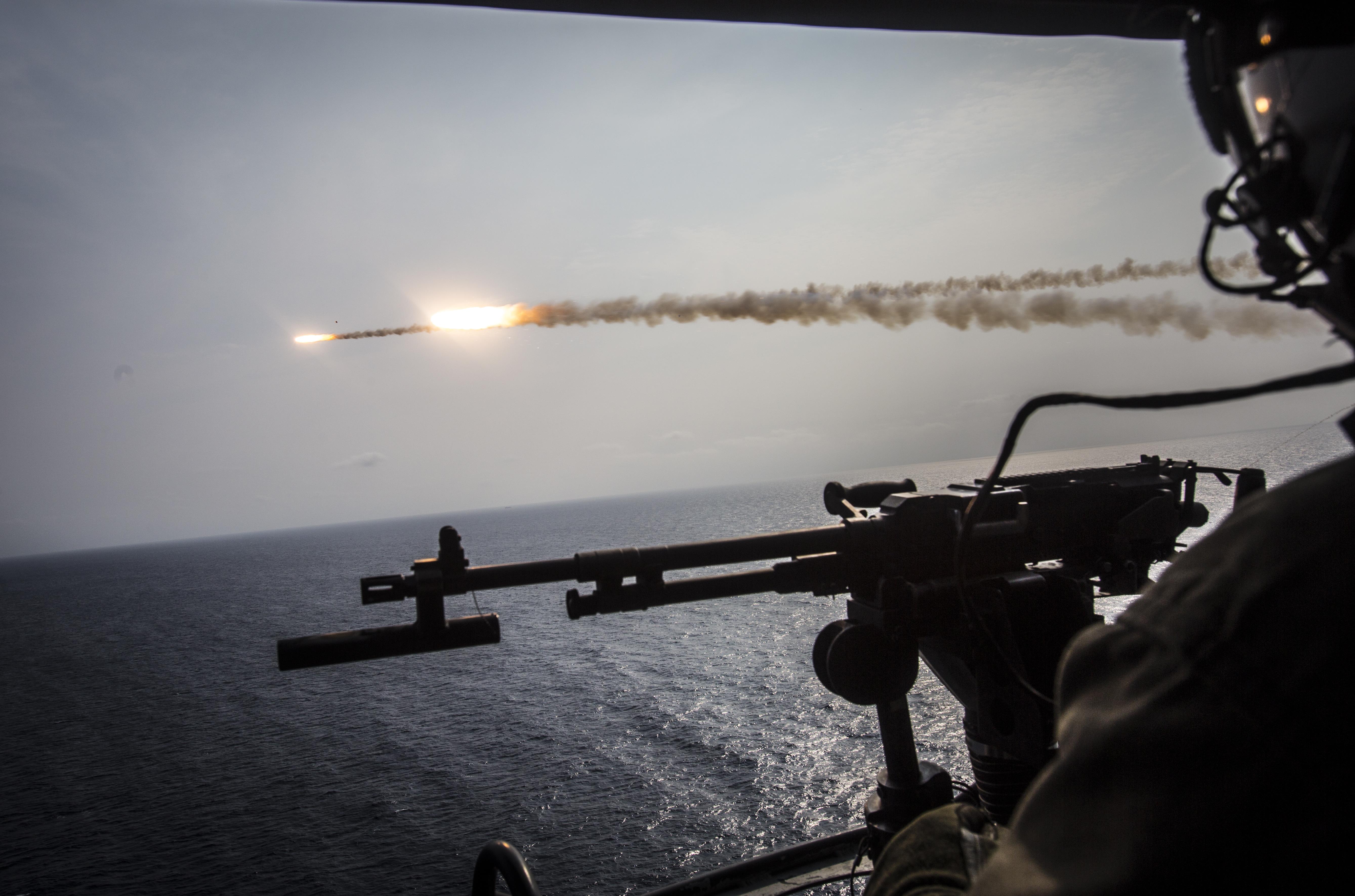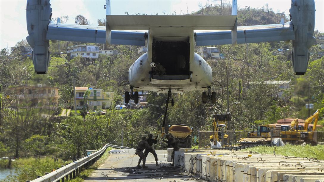 Sailors load water onto an MH-60S Seahawk near San Juan, Puerto Rico, Oct. 8, 2017, during humanitarian relief efforts following Hurricane Maria. Navy photo by Petty Officer 3rd Class Danny Ray Nunez Jr.