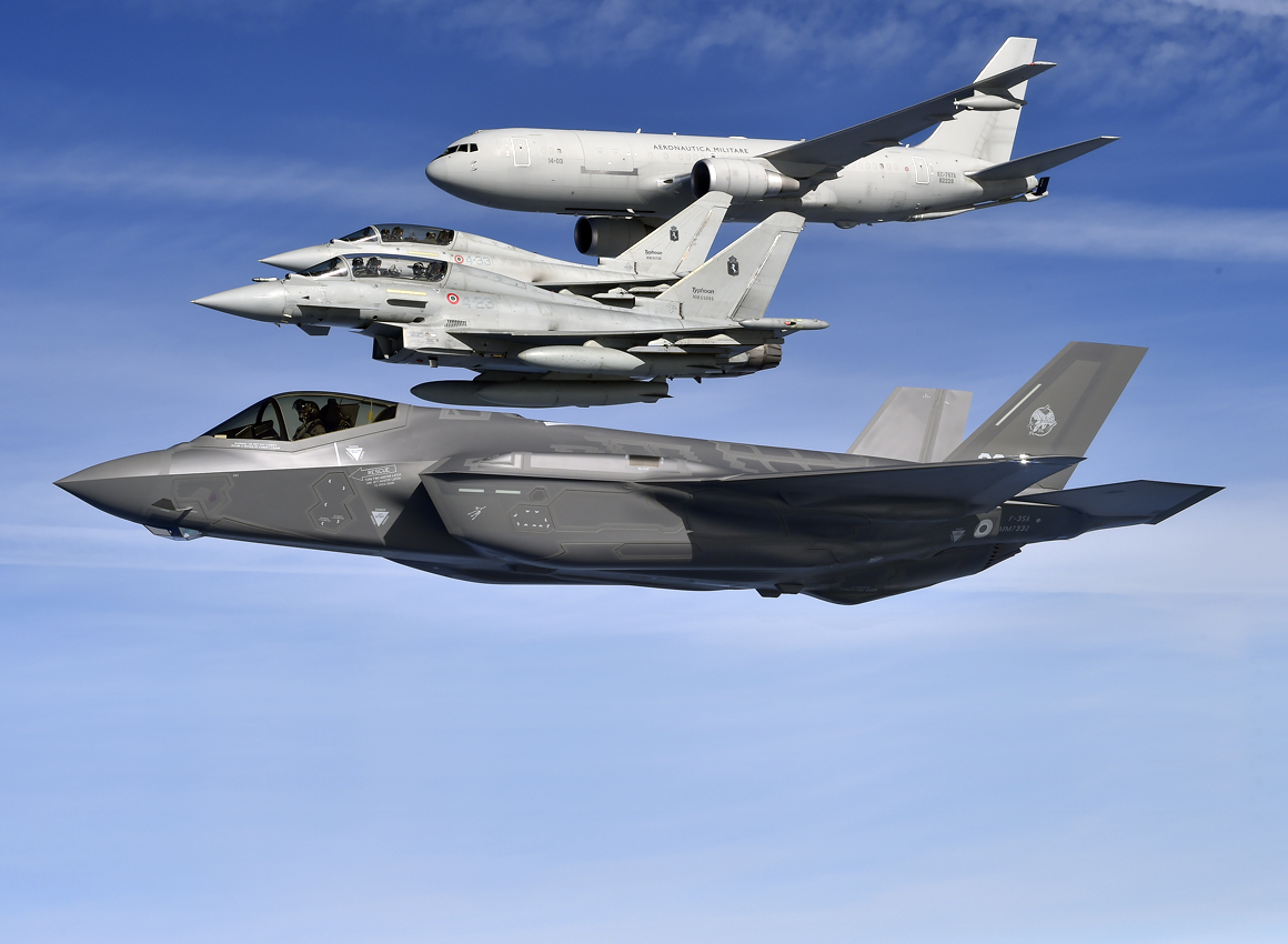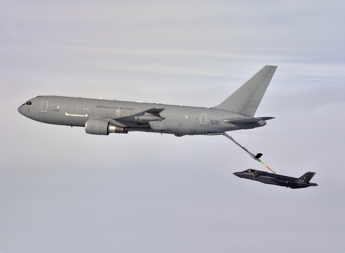 Featured Photo: An Italian Air Force (Aeronautica Militare) KC-767 aerial refueling tanker and an Italian Air Force F-35A Lightning II aircraft made aviation history Feb. 5 as the next generation stealth fighter completed the very first F-35 trans-Atlantic Ocean crossing. Photo courtesy of Andy Wolfe/Released)