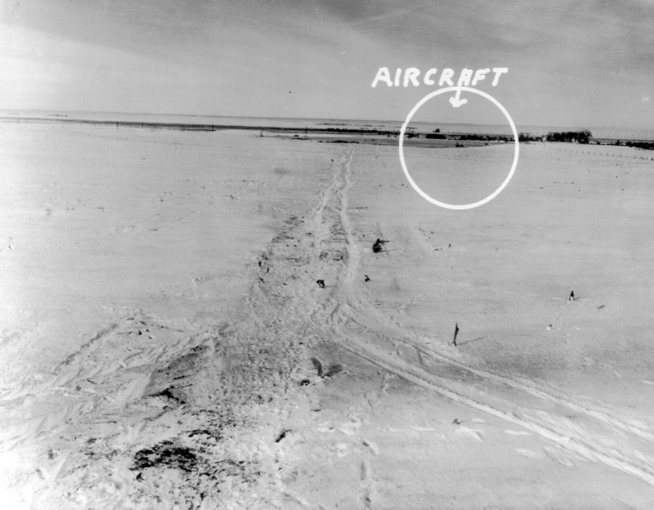 The airplane actually belly-landed in a snow-covered field near the town of Big Sandy. The local Sheriff’s Department received a phone call about an airplane sitting in the field with its engine still running. The airplane was flat-bellied in the field, which had a slight downward grade, and the Sheriff advised to just let the engine run until it ran out of gas.