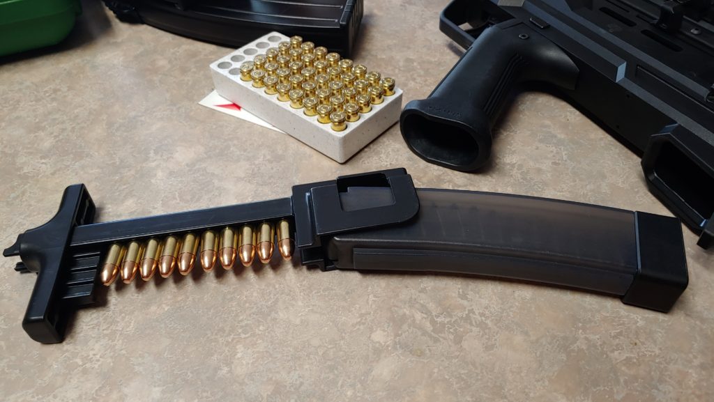 It makes loading a combat load of 7 magazines quick and straightforward. In about three minutes, I loaded 210 rounds of 9mm into my CZ Scorpion magazines. With 5.56, it can take a little longer, depending on how the ammo is boxed.