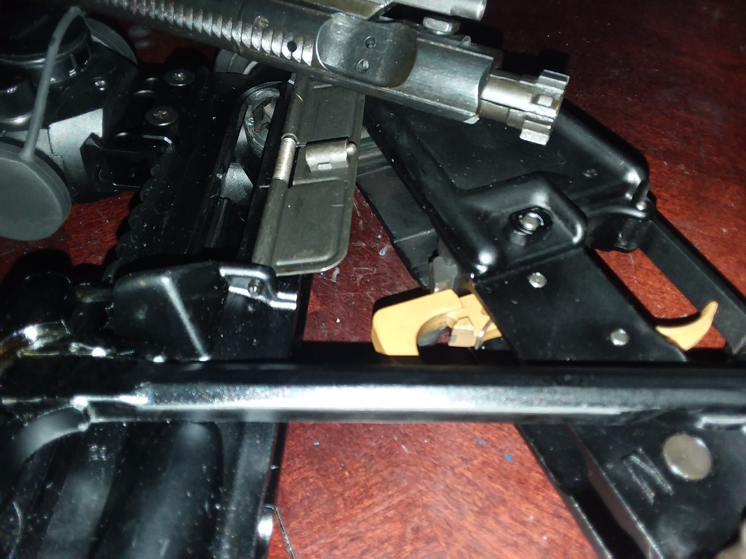 From there you will want to wipe down all remaining components, especially the mainspring and/or buffer system. The fire control group plus selector switches and magazine releases should be cleaned next. While you do these things, you may as well wipe down the inner receiver walls before reinstalling anything.