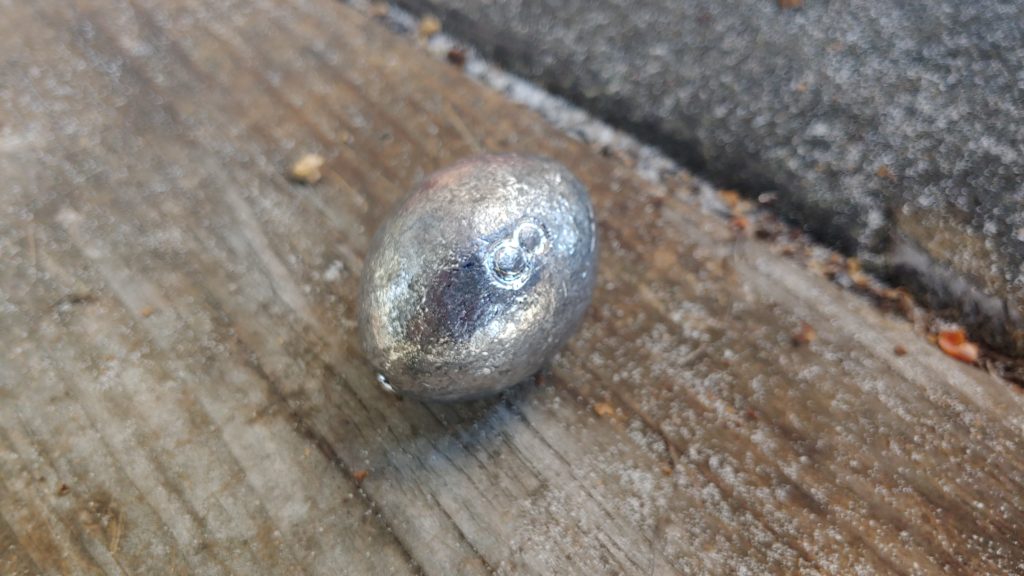 Next, you’ll need something heavy. It can be as simple as a good dense rock or as advanced as an eight-ounce fishing weight. Pool balls, soda cans, and anything else with some heft can work. It would help if you had something heavy that can transfer kinetic energy efficiently. I am using an eight-ounce fishing weight: It’s small, very dense, and strikes extremely well.