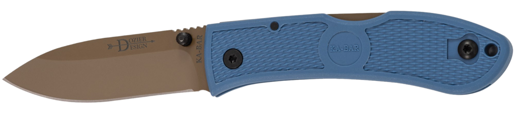 KA-BAR makes tons of folding blades, and most are robust, well-made, and affordable. The Dozier Folding hunter stands out. The knife uses D2 steel to deliver a premium-grade knife that’s well suited for a working knife. The Dozier D2 folder uses a simple Zytel handle, but it’s a robust polymer design.