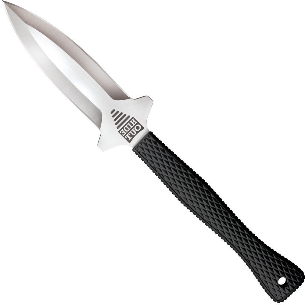 The Cold Steel Hide Out is one of my favorite neck knives. It’s a dagger design with a dual-edge blade and a handle just long enough to fill your hand. The Cold Steel Hide Out allows for rapid slashes and stabs. The blade’s handle is coated with a Kray-Ex soft rubber-like material that sticks to the hand and makes holding it easy enough.