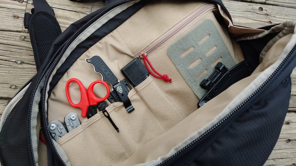 On top of the boring stuff, I can pack spare mags for my EDC, a multitool, a proper trauma kit, a fixed blade knife, a flashlight, trauma shears, and so much more. In the summer, I keep a compact emergency poncho, bug and sun repellant; in the winter, a set of gloves and a watch cap. I also keep a soft armor panel in a small compartment in the rear of the pack that protects from most handgun and shotgun blasts.