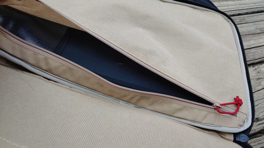 The last section is the clamshell pouch, which opens fully. It’s massive and both sides are covered in loop material. Here is where you can house a firearm if you so choose. From a broken down AR pistol to a subgun-sized Scorpion, it’ll fit. The last hidden pouch is where I keep my Premier Armor panel.