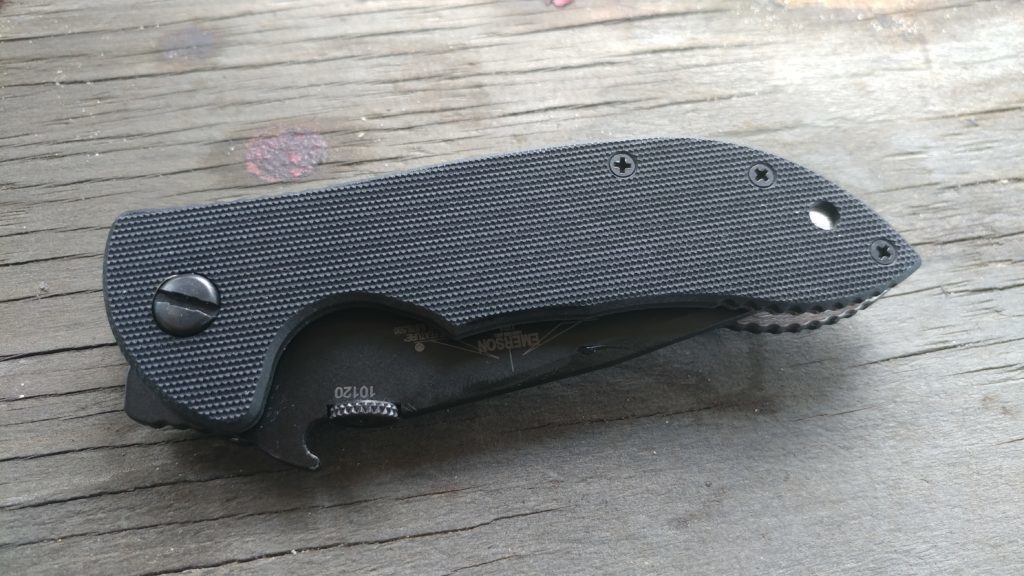 The Mini-Commander’s blade is 3.4 inches long and made from tough 154CM. This tough steel is a great knife steel. It’s tough, corrosion resistant, and holds an edge well. The only real downside is that it takes time to sharpen, but can be honed to a razor’s edge. The Mini Commander comes from Emerson with an extremely sharp blade.