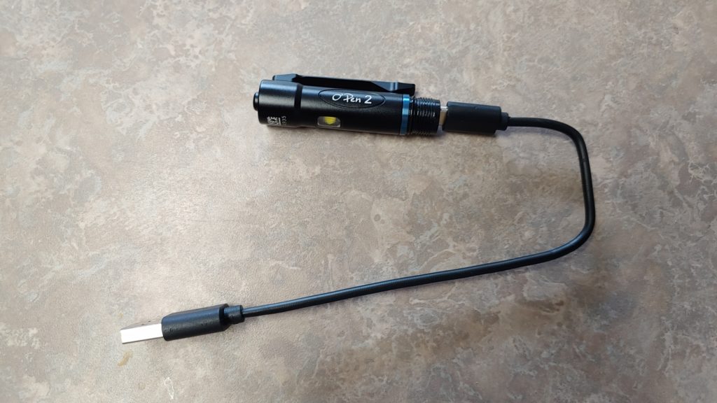 The light is rechargeable and comes with a USB attachment. Once you separate the light from the pen, you can recharge it easily enough. It takes 55 minutes for a full recharge and then you’re ready to go once more.