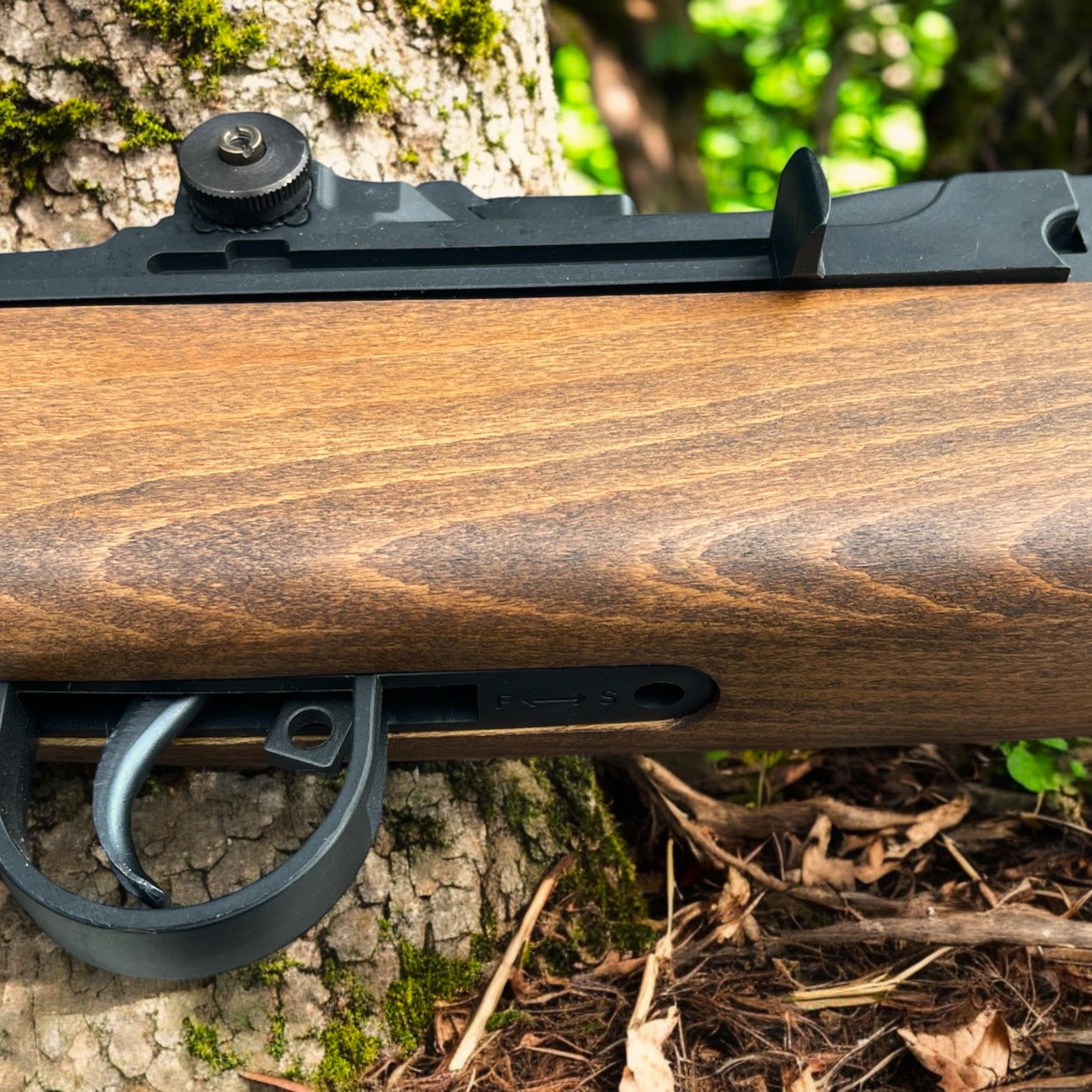 One of the standout features of the M1A Underlever is its ergonomic design. The wood stock adds to the aesthetic appeal and provides a comfortable grip for extended shooting sessions. The rifle’s weight and balance are well-distributed, mimicking the handling characteristics of the original M1A, which is a significant plus for shooters familiar with the firearm. However, the weight might be a drawback for younger or less experienced shooters, potentially limiting its appeal for casual use.