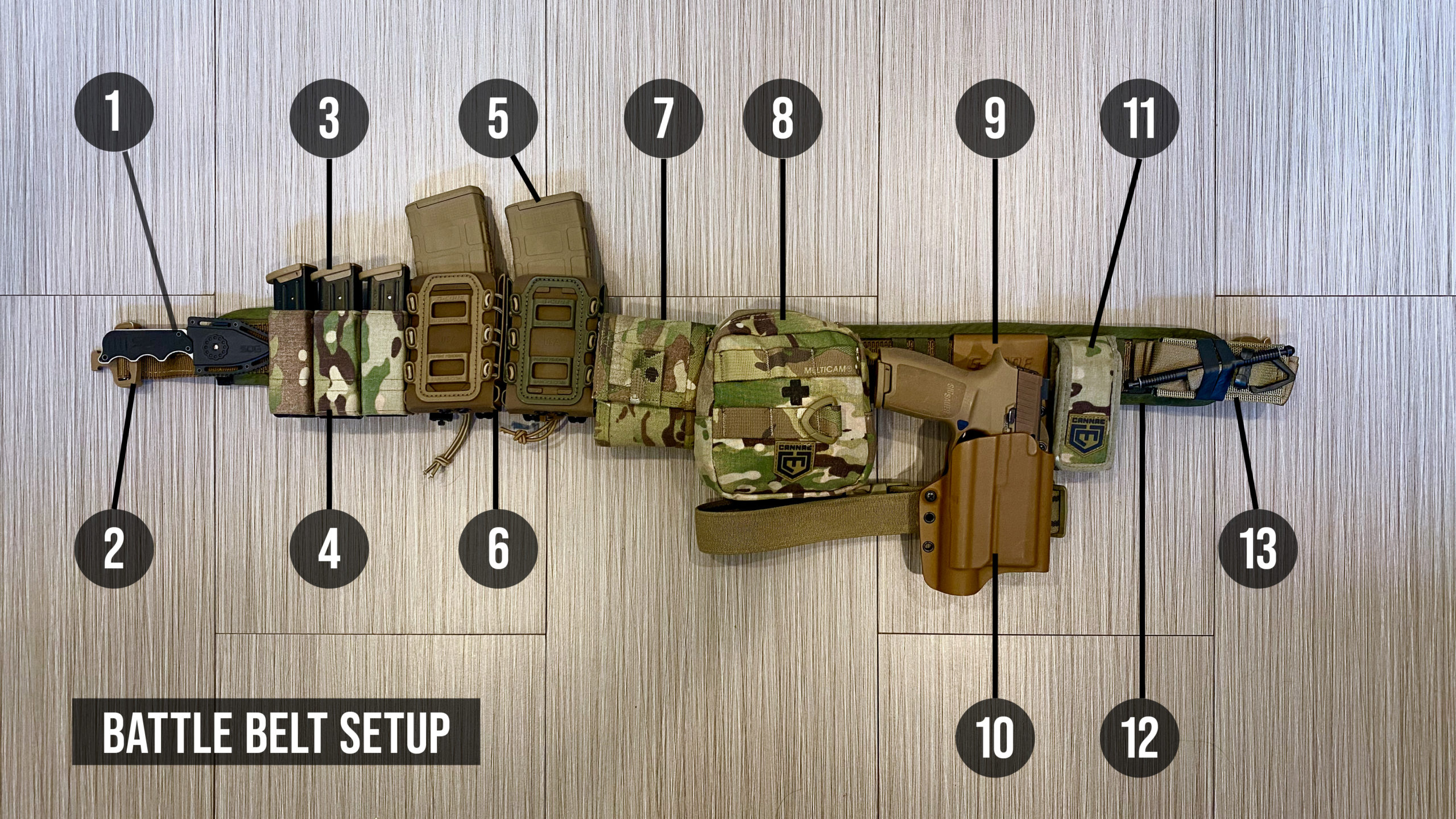 Experiment and see what works best for you. Keep in mind that you might go through multiple versions of a battle belt setup, and test out various configurations before you decide what works best. From there, making minor adjustments is normal and should be expected.