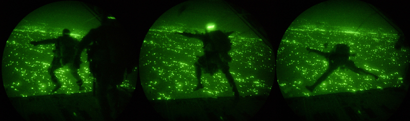 The first was on June 14, 1966 during the Vietnam War. A small team of recon Marines made the low altitude night jump determined to quietly insert and set up an observation point within enemy territory. The team made it to the ground with only one small injury and was later extracted.