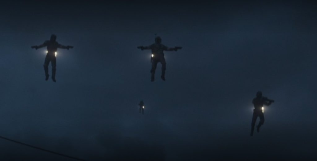 Boba Fett, the character that’s arguably responsible for the existence of The Mandalorian (despite never actually doing anything cool in any of the movies) may have become a pop-culture icon thanks to nothing more than a kickass helmet and a jet pack. This made it sort of disappointing when the protagonist of this new series was shown hoofing it everywhere. In Episode Three, we see some jet-pack-packing Mandalorians take to the sky in one hell of an action sequence. So they prove that there’s more to being able to fly than just falling in a Sarlacc pit.