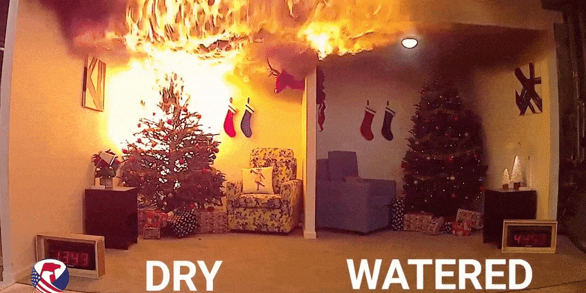 If you’re holiday season includes a big, festive, real tree, you should be aware of what a significant fire hazard pine trees become once they’re good and dry. Watering your Christmas tree will not only help it retain its needles for longer (making cleanup a bit less rigorous), it will also keep you on the right side of the demonstration above.