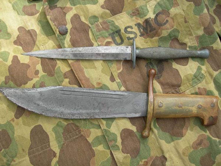 Training focused on increasing proficiency with weapons, and improving land navigation and map analysis. Much of the training was conducted with an emphasis on night combat. Hiking with full field gear started slowly and worked up to two-day 70 mile hikes. Great emphasis was also placed on physical fitness. In addition to the increased weapons training and hikes, the leaders also placed more than usual emphasis on knife fighting. Raiders were issued and carried two distinct knives; a larger classic Bowie style knife with a 9″ blade for field craft tasks and a Raider Stiletto patterned after the British Commandos. The stiletto knife was the definitive Raider weapon and was strictly a close-quarters stabbing weapon. The Marines had a long standing connection with legendary W.E. Fairbairn and E.F. Sykes who designed the knife. Both men taught the Marines the deadly art of knife fighting.
