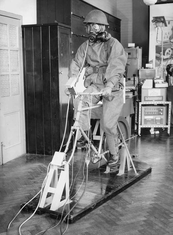 A volunteer testing the latest S6 respirator and protective clothing in the 60s’ at Porton Down. (Express.uk)