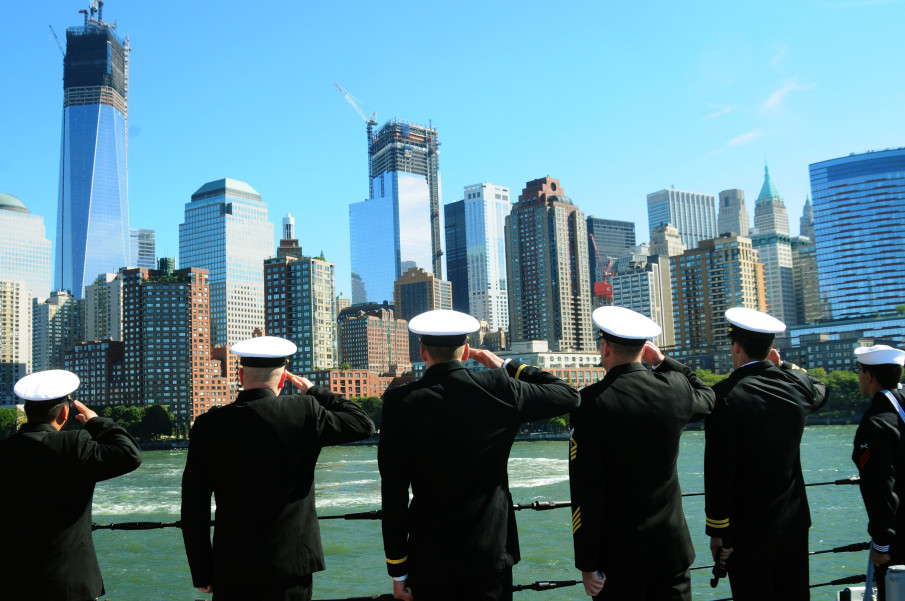 (Featured Image Courtesy: DVIDs. Sailors assigned to the guided-missile destroyer Pre-Commissioning Unit Michael Murphy (DDG 112) salute the 9/11 Memorial as the ship transits New York Harbor in preparation for her commissioning Oct. 6. The new destroyer honors the late Lt. (SEAL) Michael P. Murphy, a New York native, who was posthumously awarded the Medal of Honor for his actions in combat as leader of a four-man reconnaissance team in Afghanistan. Murphy was the first person to be awarded the medal for actions in Afghanistan, and the first member of the U.S. Navy to receive the Medal of Honor since the Vietnam War. Photo by Mass Communication Specialist 2nd Class John Scorza)