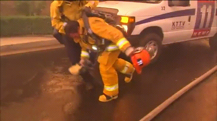 Firefighter forced to take abreak: Video courtesy of Imgur