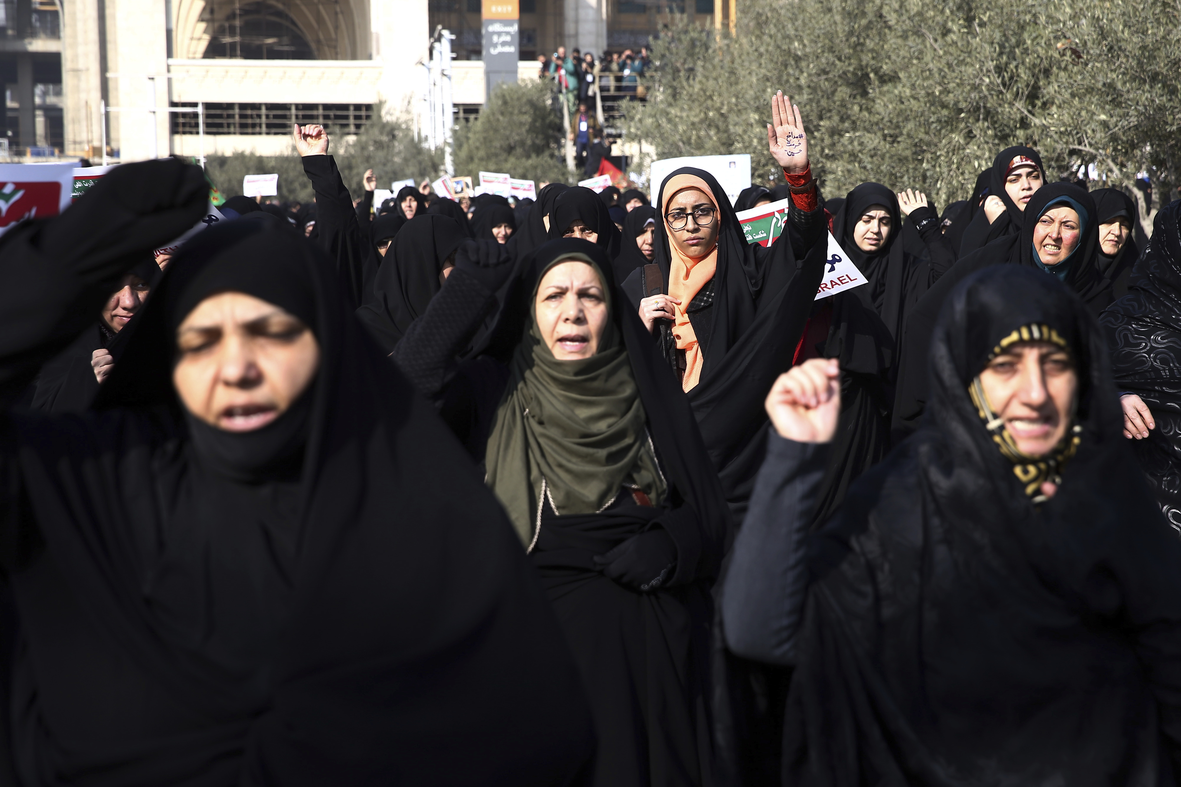 Iranian protesters chant slogans at a rally in Tehran, Iran, Saturday, Dec. 30, 2017. Iranian hard-liners rallied Saturday to support the country’s supreme leader and clerically overseen government as spontaneous protests sparked by anger over the country’s ailing economy roiled major cities in the Islamic Republic. (AP Photo/Ebrahim Noroozi)
