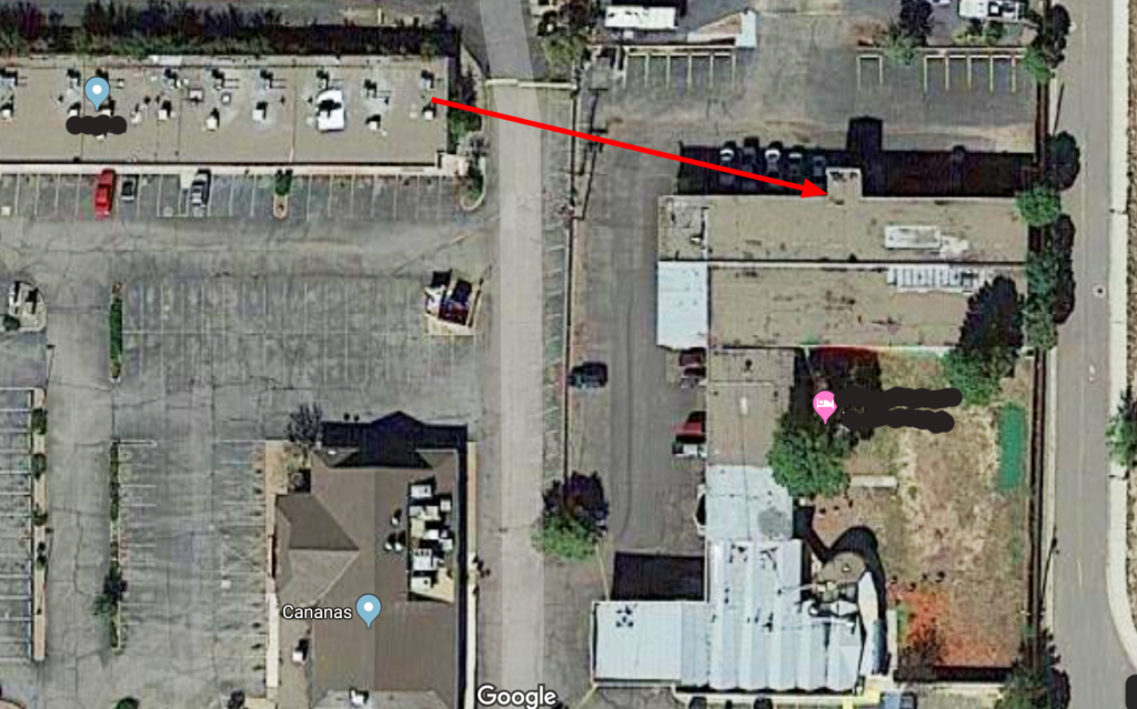 The camera itself was in a container the size of a thick briefcase. To solve the camera’s power requirement we chose to drag a deep-cycle rechargeable marine-grade car battery up to the roof with us. A drive-by reconnaissance of the camera install site revealed that it was ironically the roof of a massage parlor and not a legitimate one at that: rather, it was one whose masseuses were on record for routinely offering “happy endings” at the culmination of their massage therapy sessions.