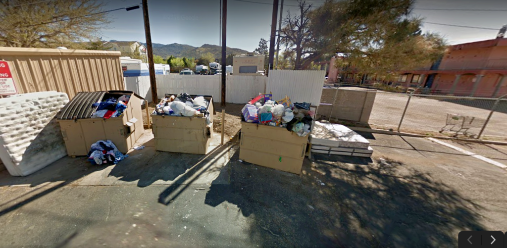 There was a set of dumpsters between the massage parlor and Mike’s motel that always sported discarded furniture — chairs and sofas and the like — which made for a comfortable means to sit for a while and observe and also backstopped the notion that I was a vagrant. Mattresses too were omnipresent at that dump, though I was reluctant to avail myself of their service.