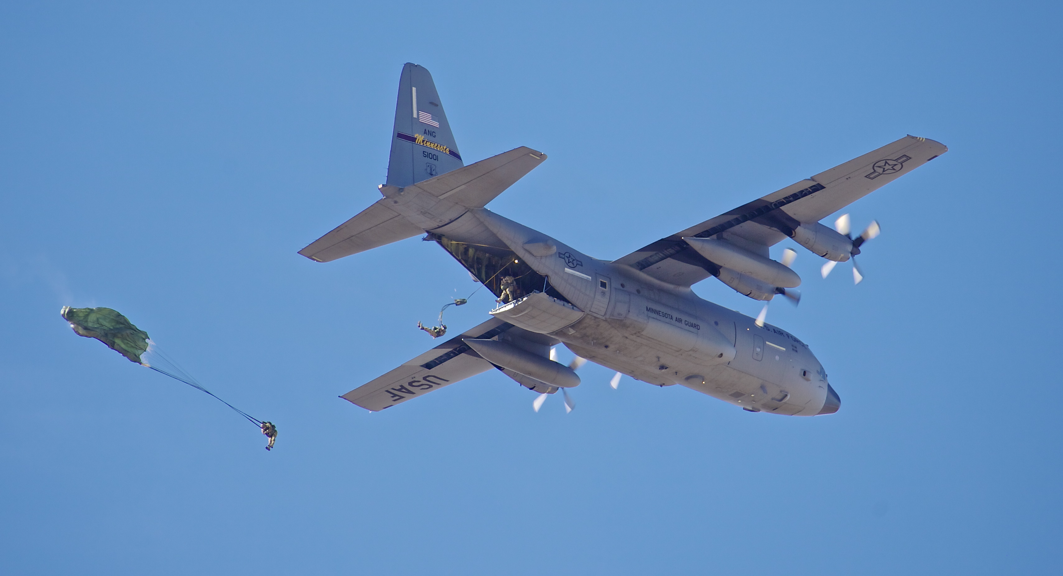 That was heads; the tail side of the coin represents high-altitude jumping where Jumpmaster calculations and adjustments to the pilot’s course give the jumpers a fair chance to land in the safe zone… provided they don’t have problems in the air and skip zones in their sanity. At 12,500 feet, there is a ginormous amount of time and range to make multiple humongous errors in landing accuracy.