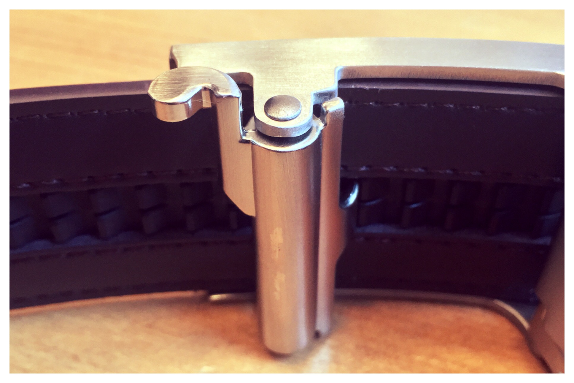 This belt is very well made from high-quality leather and looks great with both dressy or business casual clothes. The buckle I have is their Eureka stainless steel model. The release tab made it very easy to loosen or remove the belt as needed. The ratcheting system is smooth and feels quite secure once set. I never encountered a hint of slippage when testing, and the reinforced belt did not sag or fall away from the body even when carrying my Sig P320 Compact RX with Streamlight TLR-1 held in a BlackPoint Tactical Leather Wing holster. Mine is a heavy CCW setup and this belt was comfortable and in control.