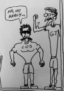 Marky-Mark “Cos” S. erupts as he always does in the morning spouting off preposterous supposed truths which receive calls of “bull$hit” from the team and Cos’ countering: “No, no really… no really… really, no…”