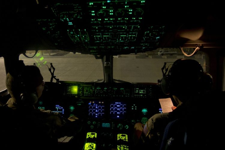 As they headed for southern Afghanistan, the Globemaster III transports were refueled by KC-135 tankers that maintained station all night. The Air Force Globemaster III aircraft flew from Qatar, Kuwait, and Saudi Arabia into the Gulf of Oman on an easterly course and then turned north in the vicinity of Gwadar, Pakistan, for the long flight into Afghanistan. One even came directly from Ramstein, Germany.