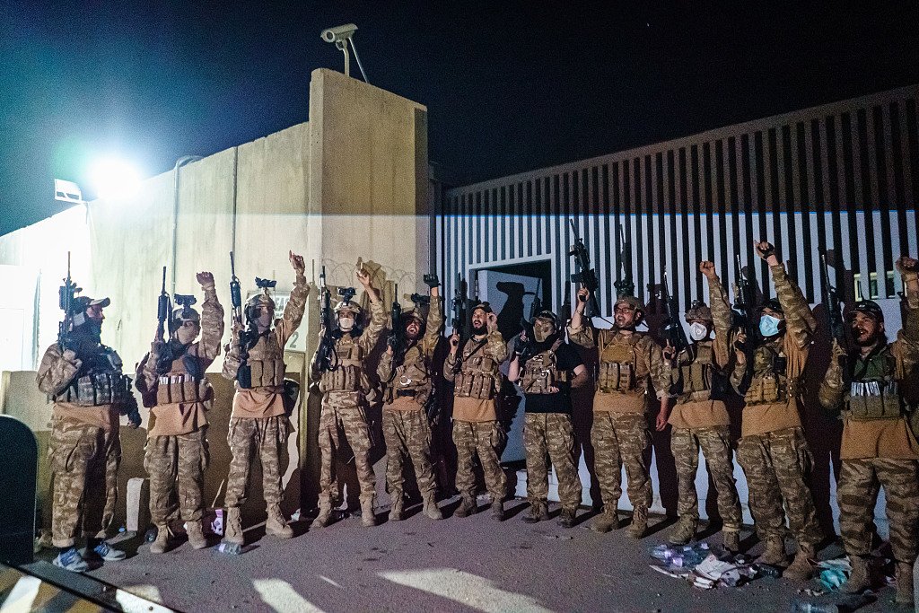 Taliban forces celebrate after U.S. troops fully pull out from Afghanistan. (Arlaardi News)