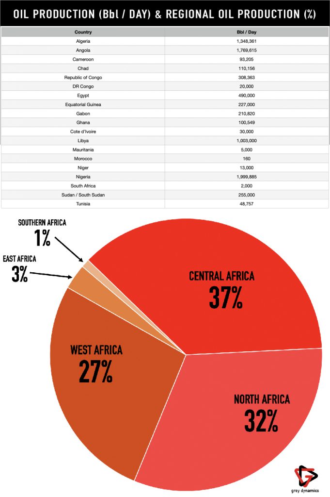 Angola, the Republic of Congo, Equatorial Guinea, Gabon, Chad, and Cameroon are oil-producing countries, and all but Chad and Cameroon are among the ten largest oil-producing African countries. The graphic below shows a comparison between oil produced in central Africa and other African states (bbl/day). The central African leads the statistics in sub-Saharan Africa.