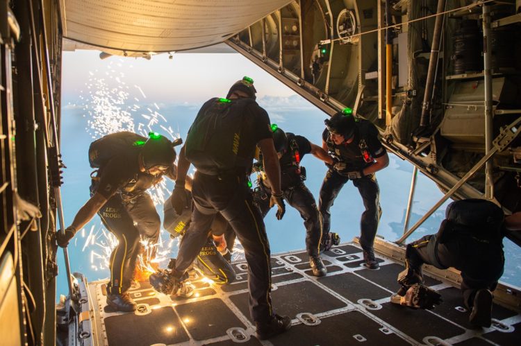 So we did about an hour of twisting, turning, gut-wrenching flying before the awesome pilots of the C-130 began to level off. We then went through our normal jump procedures and the tailgate was downed with the red glow of the interior lights bathing everything. The team was gathering near the tailgate, but our team sergeant was shaking his head. He couldn’t see the drop zone. We weren’t over the DZ — and remember this was a blind drop, there were no lights or panels on the DZ.