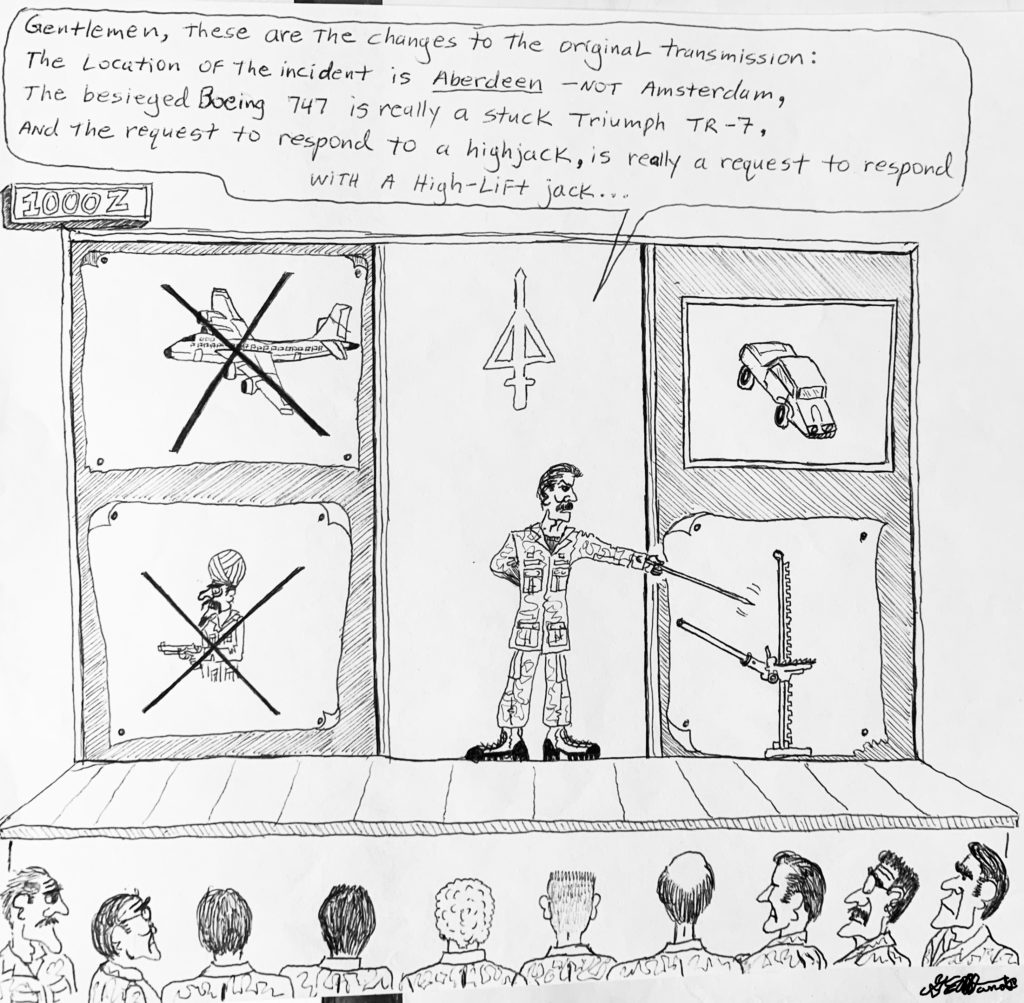 Strolling into my assault team’s room so as to appear cool and collected, I quelled the temptation to blurt out: “What’s going on? What’s happening?? WHAT THE HELL IS GOING ON???” like a rookie. Nobody wanted to hear that annoying question in the first place, and secondly, if any of my mates had ANY information they were going to pass it on to me immediately.