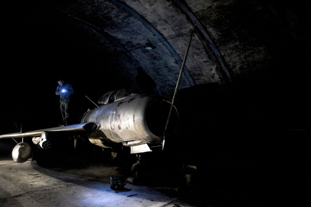 Featured image: TOPSHOT – Albanian military personnel walk next to MIG-19 jet fighters inside the main tunnel of the Gjader Air Base built near the city of Lezhe, on February 5, 2019. – On a barren hillside in northern Albania lies a portal to the country’s communist past: a massive steel door creaks open to reveal a hidden former air base burrowed into the heart of the mountain. Made up of 600 metres (1,980 feet) of tunnels that once teemed with military life, the secret Gjader air base is now a depot for dozens of hulking communist-era MiG jets collecting dust in the darkness. Three decades after shedding communism, Albanian authorities are still trying to sell off the Soviet and Chinese-made aircraft, of which there are dozens more in another nearby air base. (Photo by Gent SHKULLAKU / AFP) (Photo credit should read GENT SHKULLAKU/AFP/Getty Images)