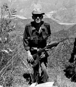 Che and one of his men were lightly wounded and trying to flee up a steep hill. But Captain Prado and his men were waiting. When Che and his companion were hit, his M-1 carbine was also hit and rendered useless. He identified himself as Che Guevara and surrendered to Prado. He told them that he would be a “valuable prisoner.” Probably to avoid being shot out of hand… but the Rangers were too disciplined for that sort of behavior.