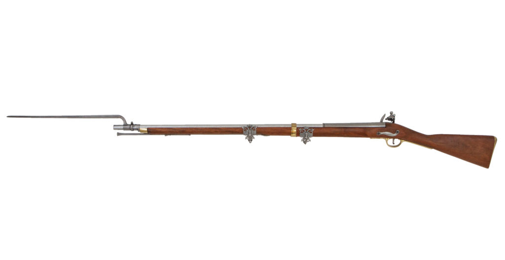 A Brown Bess flintlock musket with a fixed bayonet. Image courtesy of Irongate Armory.