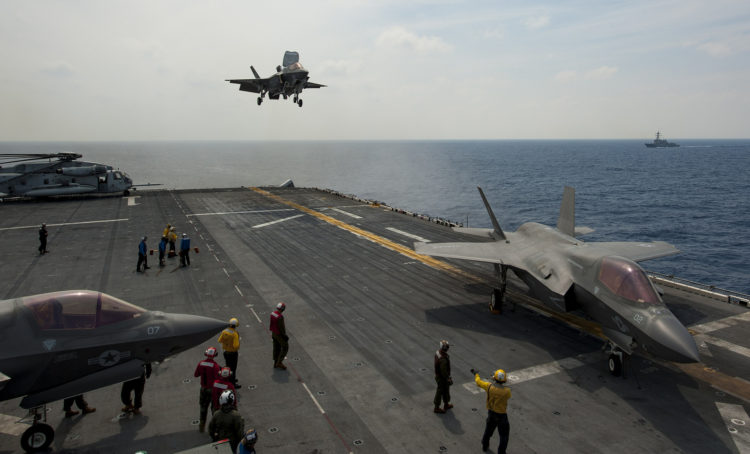 The aforementioned USS Wasp, as a matter of fact, is currently deployed to the Pacific with ten F-35Bs on board. These short takeoff, vertical landing iterations of the Joint Strike Fighter are operated by the U.S. Marine Corps from the decks of these amphibious assault ships, making them perhaps the most combat-potent “non-carrier” aircraft carriers on the planet.