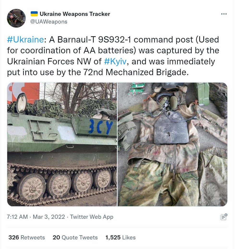 While we are helping out the Ukrainians with two different defensive radar systems in this latest round of military aid, one can never have enough protection from incoming threats. With this in mind, Ukrainian forces have also helped themselves out a great deal by capturing sophisticated Russian radar-equipped air defense command posts such as the Barnaul-T seen in the tweet below.