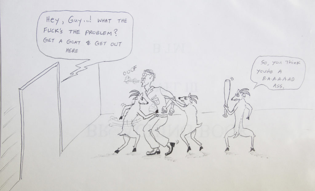 Guido emerged with the same expression of smug bewilderment of Moses descending from Mt. Sinai. With a goat by the horns on either side of him, he lifted them off their front legs as he walked them along on just their hind legs. We four applauded warmly as our TL belted out comedic one-liners. He wasn’t funny; he never was, and we routinely reminded him of that, but he made himself laugh, and that’s all that mattered — to him!
